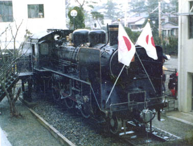 昭和49年、ちょうど世の中は「SLブーム」の真っ只中だったのだが、こ の学校でも創立25周年記念行事の一環として本物の蒸気機関車を生きた教材として購入し ようという話が持ち上がり、C56 111号機を小学校校舎の裏手で静態保存すること が決まった。翌年初頭、大阪の業者(定かではないが九条の「共永興業」ではなかったか と思う)を経て無事搬入され、今日までたくさんの子供の成長を見守り続けているのであ る。